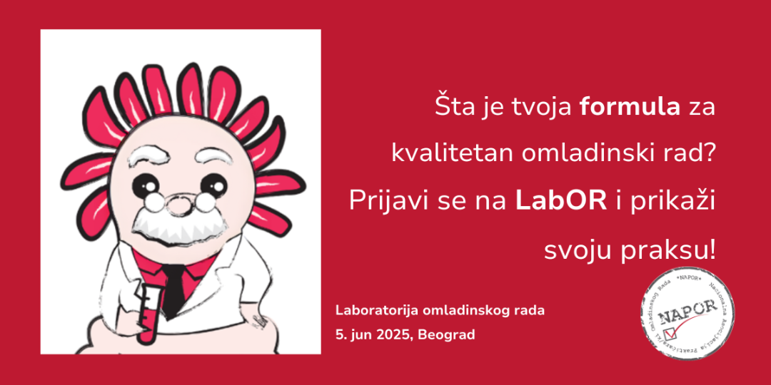 Nacionalna asocijacija praktičara/ki omladinskog rada – NAPOR otvara poziv za omaldinske radnike/ce i organizacije koje žele da prikažu metode – instrumente – tipove omladinskog rada koje praktikuju u svom radu na konferenciji Laboratorija omladinskog rada – LabOR.